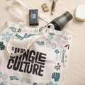 - Jungle Culture’s folding reusable shopping bag is made from a thick, high-quality, sustainably sourced blend of canvas and organic cotton. The blend of sturdy canvas material and soft organic cotton gives our eco-friendly grocery bags durability, but also allows them to fold neatly into your pocket, purse or backpack.